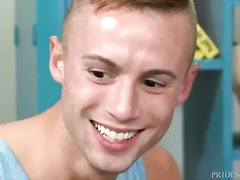 Adorable gay Rad Matthews blows two dicks in hardcore 3way